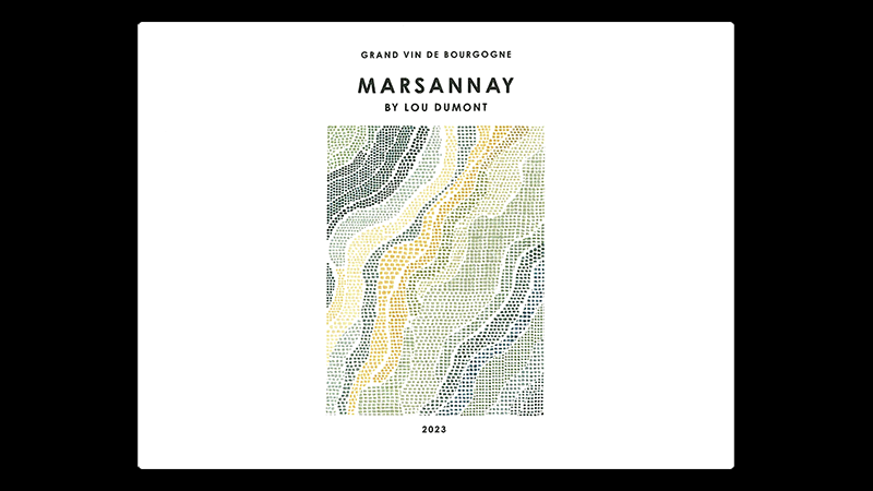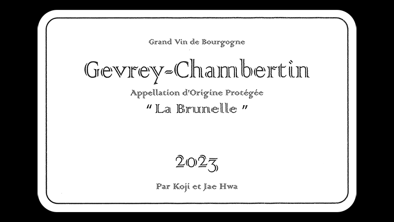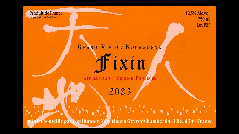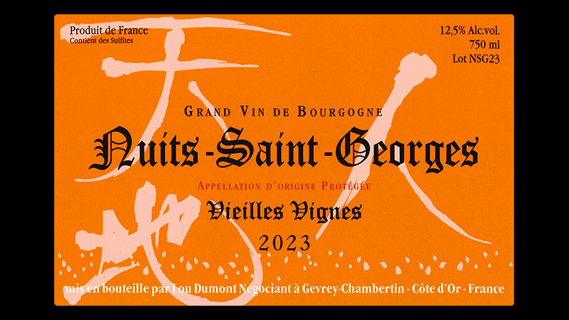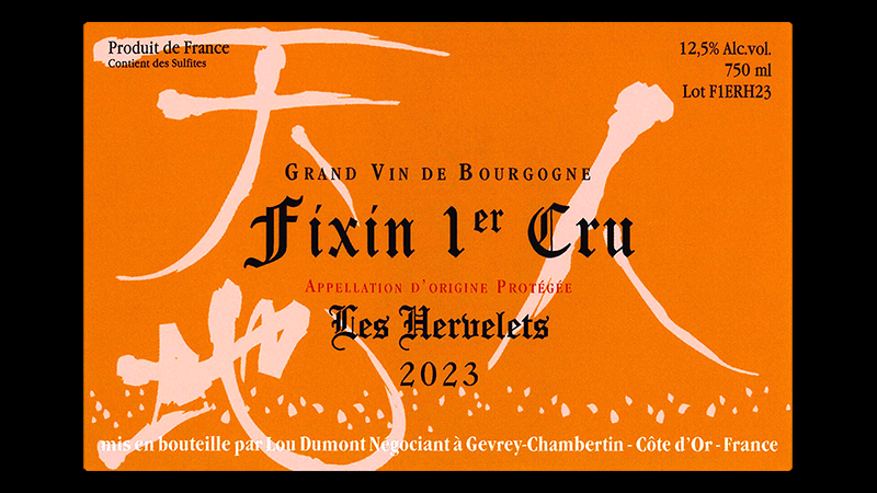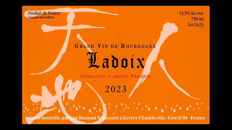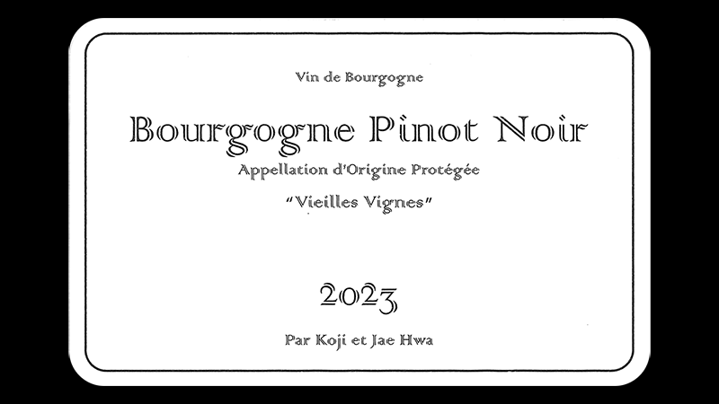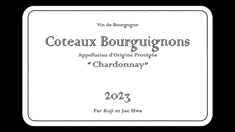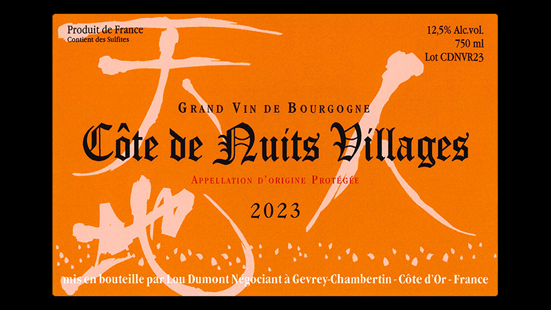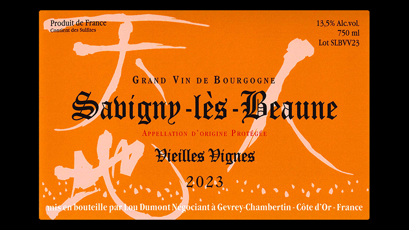 ビオディナミによるメルキュレイ村内のACブルゴーニュが80%、ACオート・コート・ド・ニュイが20%のブレンド。ビオロジック栽培(「カリテ・フランス」の認証を取得)。平均樹齢30年以上。収量は50hl/ha。天然酵母のみで発酵。カヴァン社製ジュピーユ産の新樽率20%で18ヶ月間樽熟成。無清澄、ノンフィルターでビン詰め。ラベルの絵は、コラボレーションしているパリのデザイン学校「エコール・ブルー」の学生さんが描いたもので、以下はその学生さんによる作品解説です。「dessus-dessous(逆さまに)描かれた、生きた文字。自由に本能的に、墨汁で描きました。それぞれの文字は前の文字から生まれ、流動的な糸によって運ばれ、再生過程にある皮膚のようにお互いを結び付けています。これはタイポグラフィーではなく、痕跡であり、記憶です。柔らかく生々しい傷跡のように、大地に捧げられた手、呼吸、思いやりの物語を語ります。この文字は、再生する土壌の響きです。不完全で、生きており、脆く、しかし希望に満ちています。流れ、つながり、癒す名前-思いやりに満ちた世界から生まれたワインのように」。