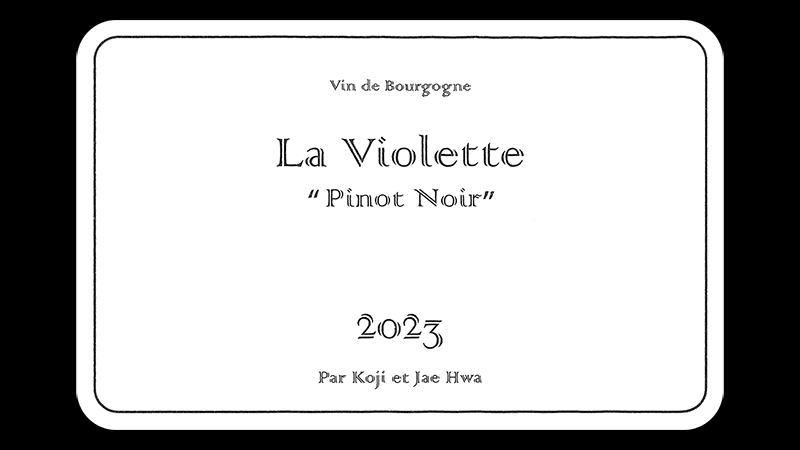 AC Bourgogne Hautes-Côtes de Nuits。2020年に0.13haを購入し0.2haをフェルマージュ契約したルル・ヴェルジー村の区画「ラ・ヴィオレット」産のピノ・ノワール100%。樹齢は5~30年。前所有者の時代から10年以上ビオロジック栽培を継続し、2020年に「ビュロー・ヴェリタス」の認証取得。馬で耕作。収量は30hl/ha。除梗率20%。天然酵母のみを使用し、250リットルの砂岩製のアンフォラ3分の1、シャサン社製「グラン・ファン」の新樽3分の1、同1回使用樽3分の1で発酵後、16ヶ月樽熟成。無清澄、ノンフィルターでビン詰め。