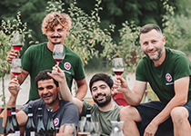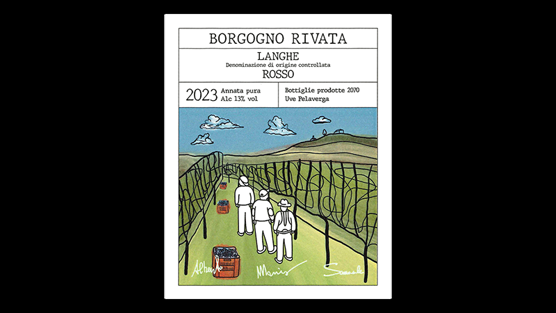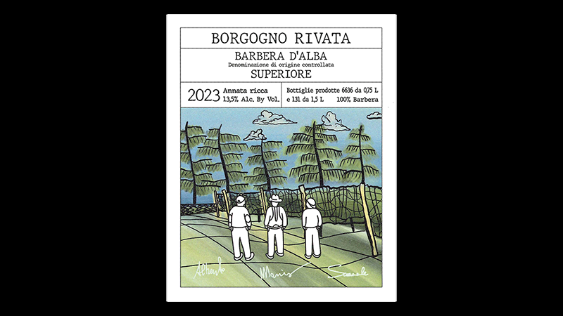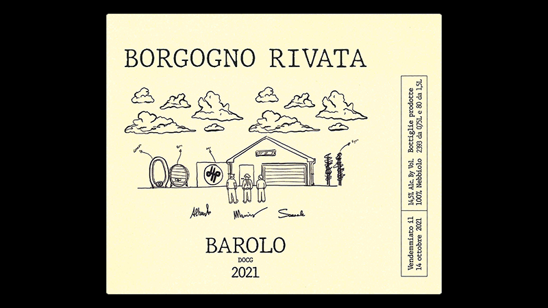 レ・ランゲ地方のラ・モッラにて戦後よりワイン造りを続けてきたボルゴーニョ家とリヴァータ家の婚姻によって2015年に誕生したワイナリーで、2020年以降、ラベルに描かれているアルベルト・ボルゴーニョ(写真左下)、マッシモ・リヴァータ(同右)、およびサムエレ・フォンタノーネ(同左上)の3人が運営しています。また同年より、新潮流のピエモンテの旗手として名高い醸造コンサルタント、ジョヴァンニ・ミニョッラ(同中央)をパートナーとして迎え入れました。