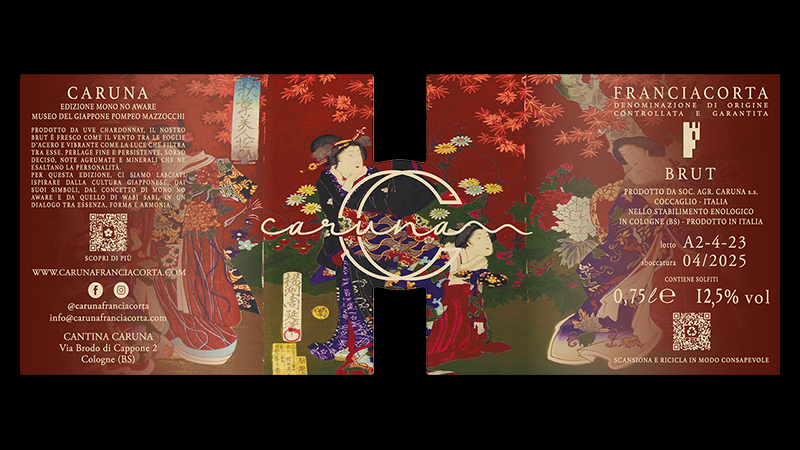 DOCG Franciacorta。シャルドネ100%。オルファノ山の南向き斜面畑より。石灰質土壌。樹齢15~30年。ステンレスタンクで醸造。24ヶ月間ビン熟成。ドザージュは3.5g/l。ラベルの絵は、「東洋美術館-マッツォッキ・コレクション」所蔵の楊洲周延による木版画「秋草美人揃い」です。この作品は、秋の自然を愛でる優雅な女性たちの姿を描いています。