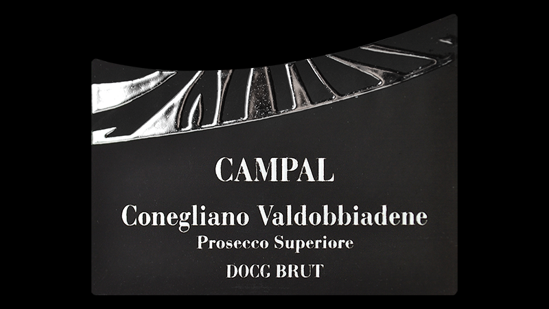 DOCG Conegliano Valdobbiadene Prosecco Superiore。グレラ100%。2ha。粘土質土壌。樹齢約20年。ステンレスタンクで醸造。シャルマ方式。全工程に最長6ヶ月間かけてタンク内2次発酵。残糖は8g/l。「カンパル」は区画名です。