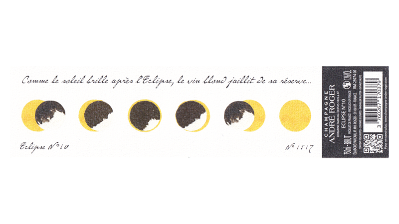100%グランクリュ・アイのピノ・ノワール100%によるブラン・ド・ノワール。平均樹齢30年。2017年産を除く2011年~2021年産までの10年分のワインをソレラ式に貯蔵していたヴァン・ド・レゼルヴを使用。澱引き後228リットルの樽で3年間熟成。15ヶ月間ビン熟成。MCR(濃縮ぶどう果汁)によるドザージュは8g/l。作品名の「エクリプス」は「日食」のことで、「日食の後に太陽が光り輝くように、暗い地下セラーで長期熟成させた後に金色に輝くシャンパンが姿を現します」。ラベルの絵も、水彩画が趣味というジャン・ポル自身が描いたものです。「N°10」の生産本数は7550本で、ラベルにシリアルナンバーが記載されています。