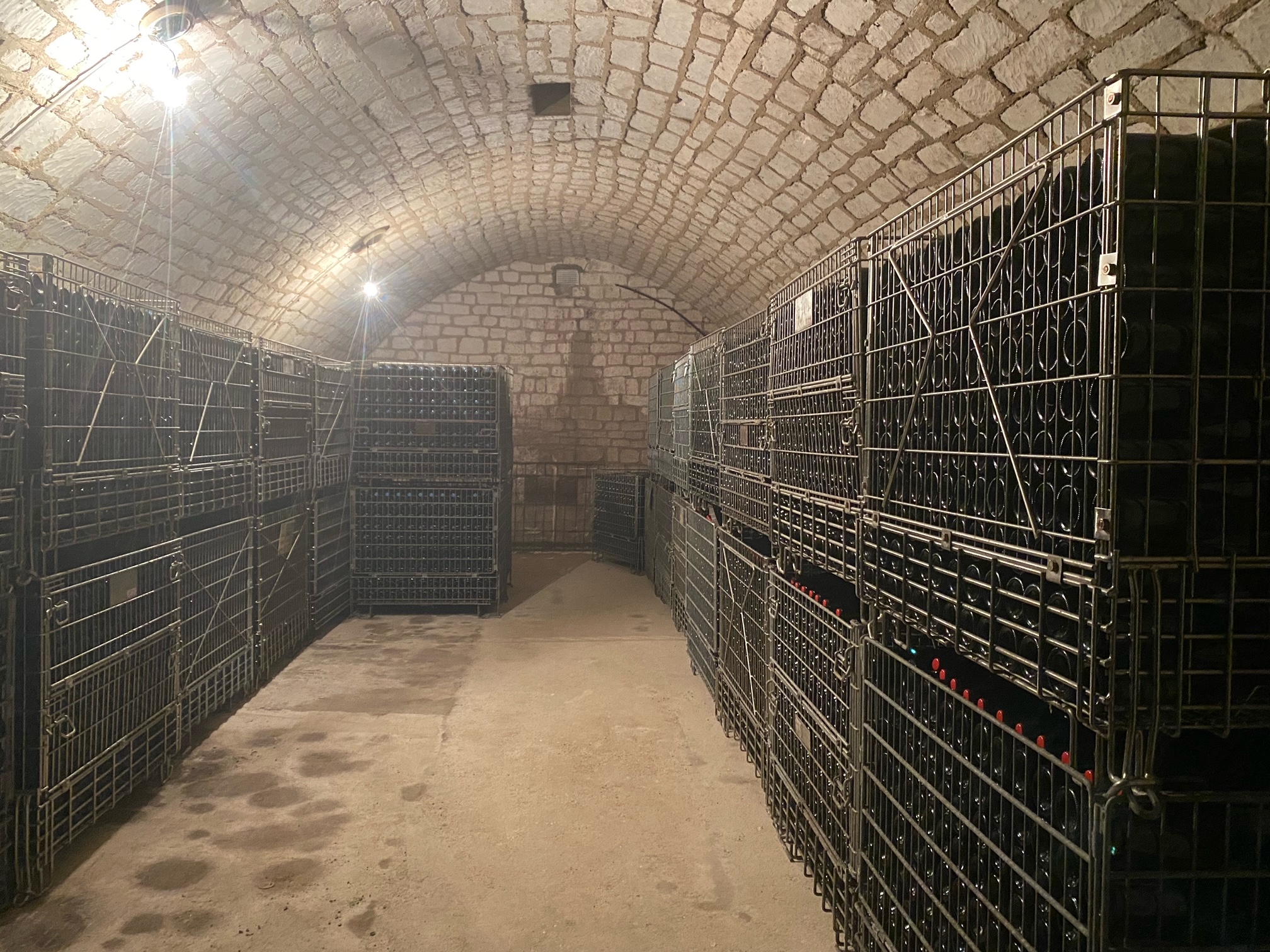 「コート・デ・ブランの主要4村それぞれのシャルドネの特徴を一口でまとめると、クラマンは柑橘系の果実味と鮮度感、アヴィズは口当たりのまろやかさ、オジェは酸とミネラル、ル・メニル・シュル・オジェは凝縮感と力強さです。ミネラルは4村すべての特徴ですがテロワール的にもオジェが筆頭です。このうちクラマンとオジェを同比率でブレンドすることにより、ふっくらとして爽快な果実味と、たっぷりとした酸、ミネラルの深い塩味を、1本ですべて楽しむことができます。そしてこのブレンドによる醍醐味は、3年間以上ビン熟成させることによって短・中・長期的に最大となります」。