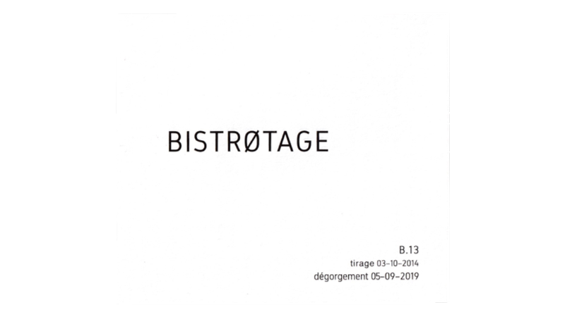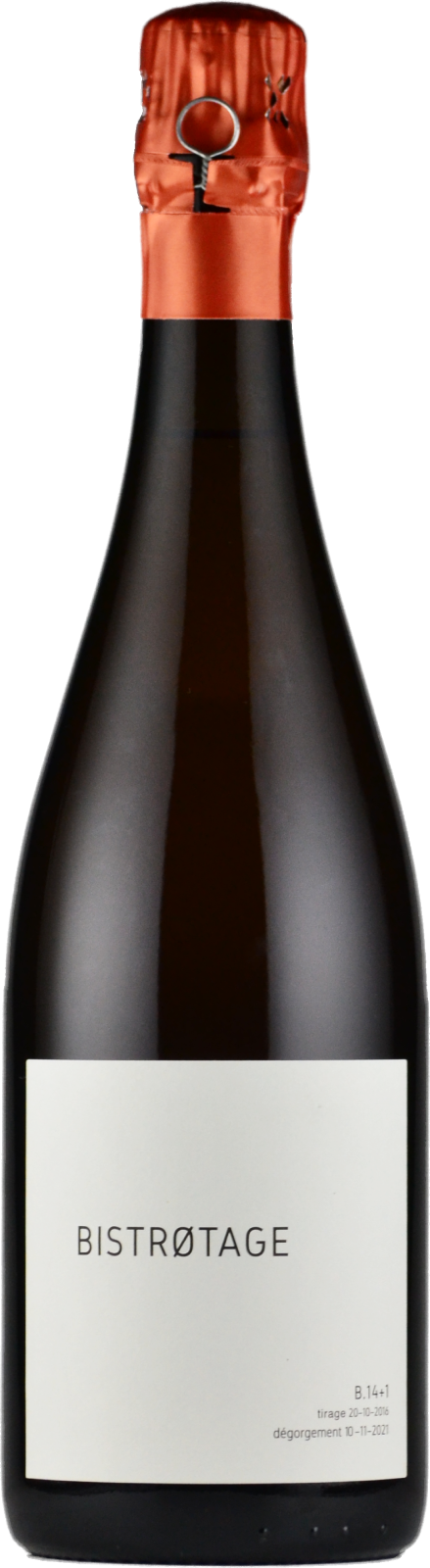 ビストロタージュ B.14+1<Françoise Martinot> シェルヴェの区画より、ピノ・ノワール100%。粘土石灰質土壌。平均樹齢35年のVV。2014年産100%。50%をエナメル製タンクで、50%をブルゴーニュ製228リットルの樽で発酵&12ヶ月間シュール・リー熟成させた後、フードルでさらに12ヶ月間熟成(作品名の「+1(年)」)。5年間以上ビン熟成。ドザージュはゼロ。