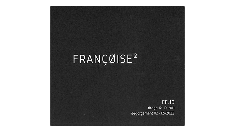 フランソワーズ・フランソワーズ<Françoise Martinot> シェルヴェ村のリウ・ディ「レ・コピ」産のピノ・ノワール100%。粘土石灰質・キンメリッジアン土壌。樹齢20年以上。収量は76hl/ha。2013年産100%。50%をステンレスタンクで、50%を400リットルの樽で発酵&12ヶ月間シュール・リー熟成。10年間以上ビン熟成。ドザージュはゼロ。