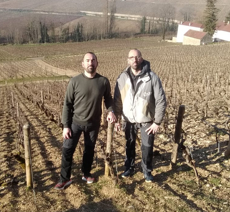 ディコンヌ家は、シャサーニュ・モンラッシェ村に南接するルミニー村に1852年から続くぶどう栽培家です。1982年に自社ビン詰めを開始し、2010年より5代目となるクリストフとヤン(写真)の兄弟が運営しています。