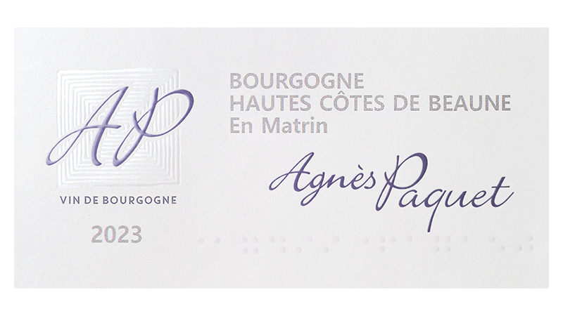 クレマン・ド・ブルゴーニュピノ・ノワール40%、シャルドネ35%、ガメイ20%、アリゴテ5%のブレンド。平均樹齢20年。現在販売中のものは、2012年産と2011年産のアサンブラージュ。約12ヶ月間の瓶熟成。ドザージュは10g/l。「クレマン・ド・”ブルゴーニュ”ですから、ブルゴーニュの主要4品種を全部使いました。ピノ・ノワールは果実味、シャルドネはフィネス、アリゴテは酸、ガメイはストラクチャーを与えてくれます。食事の最初から最後までこのクレマン1本で通せるような、コクのある、しっかりとした味わいのクレマンを目指しました」(アニェス・パケ)。