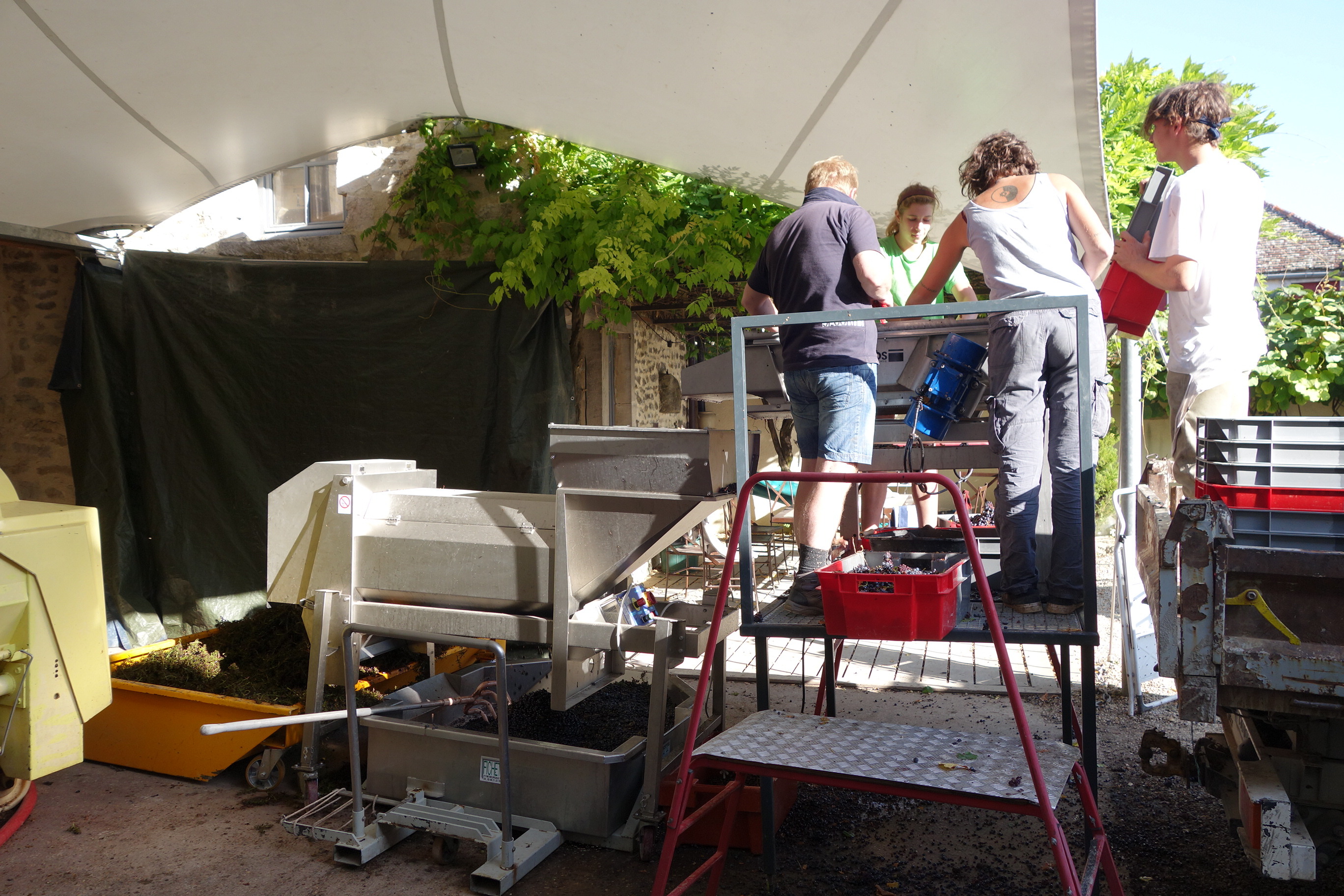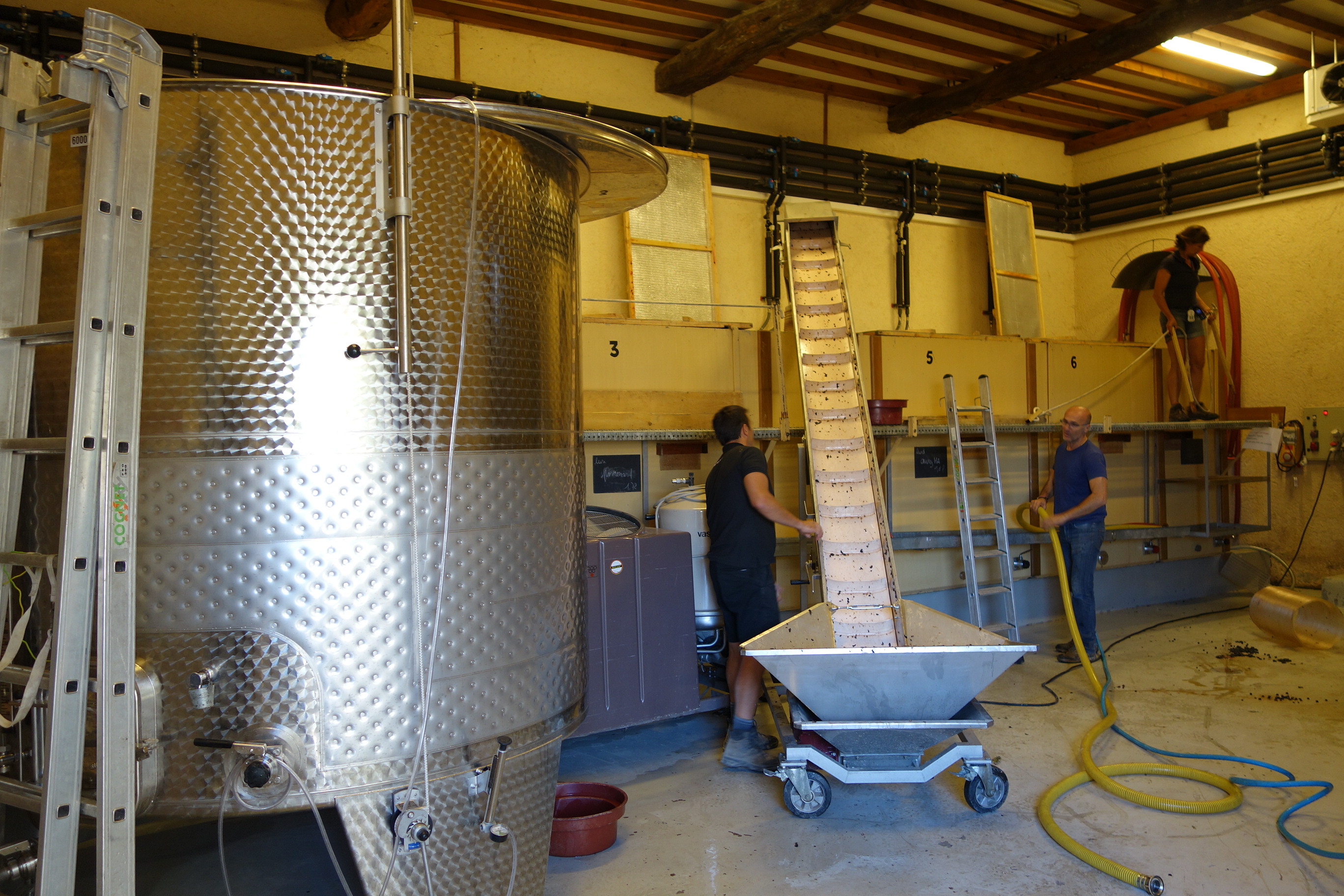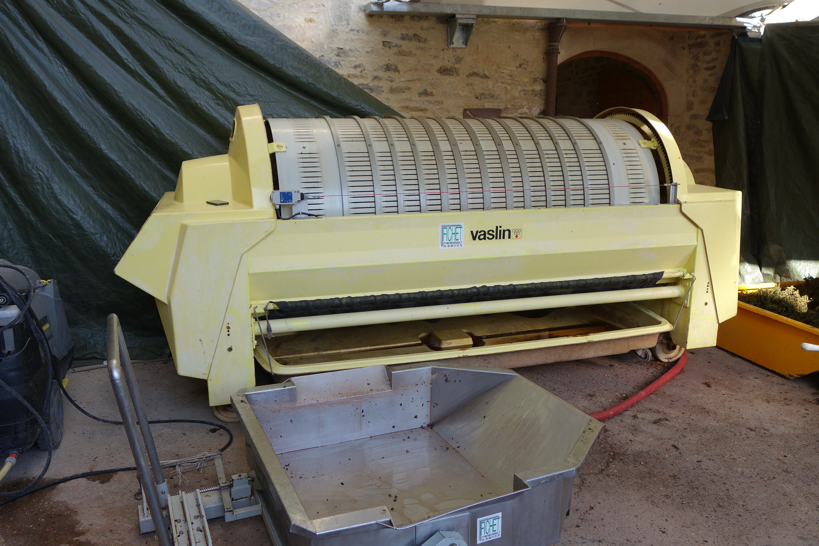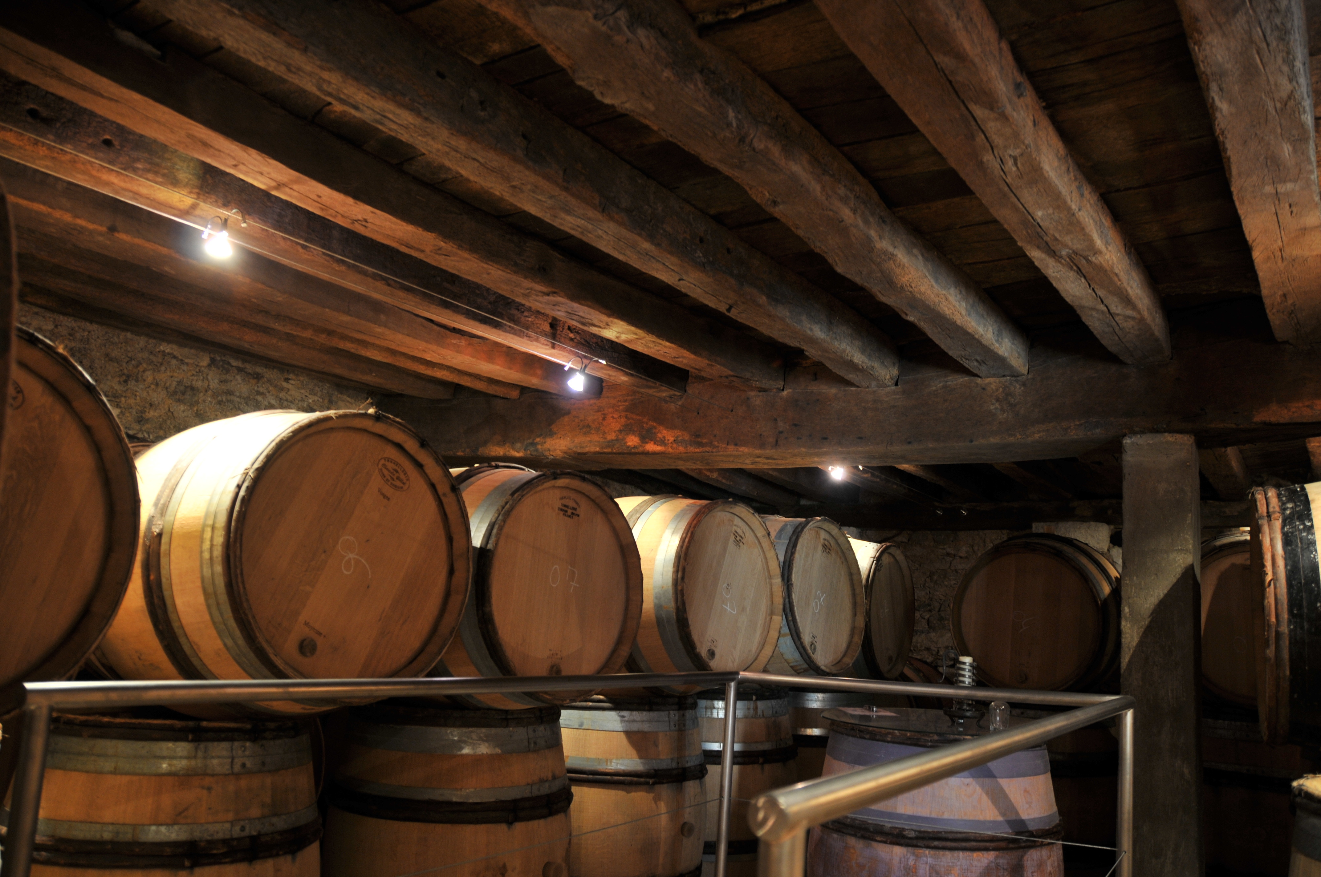 - 2回選果。天然酵母のみで発酵。白は除梗せず、赤は90~100%除梗。「果実の風味と熟成力を最大限保つために」、酒石酸の冷却処理を行わない