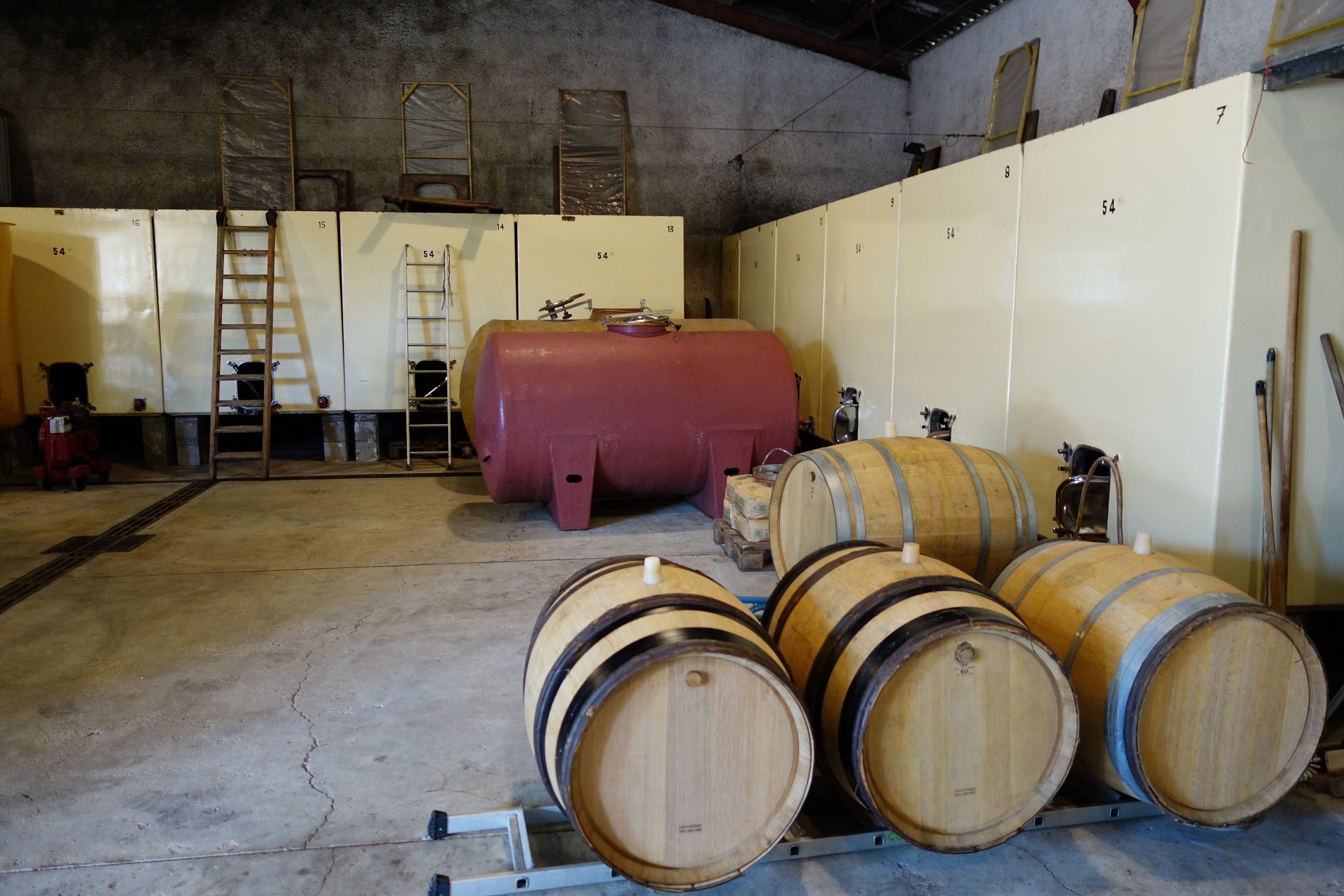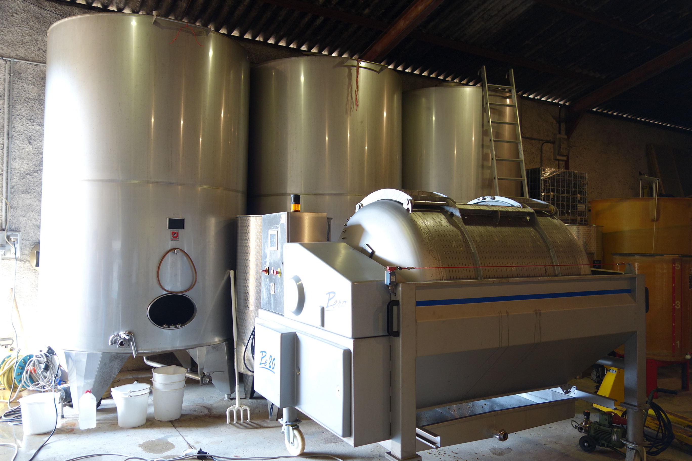 - 天然酵母のみで発酵。白は除梗せず、赤は100%除梗