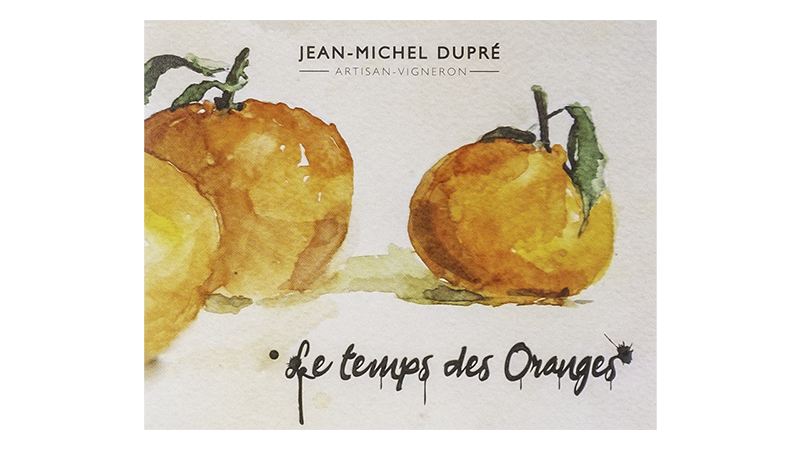 ル・タン・デ・ゾランジュVin de France(オレンジワインのため。畑の格付けはAOC Beaujolais-Villages Blanc)。シャルドネ100%。1ha。砂質・花崗岩質土壌。樹齢約10年。コンクリート製タンクで15日間のマセラシオン発酵後、60%をタンクで、40%を樽でマロラクティック発酵&10ヶ月間熟成。無清澄、ノンフィルターでビン詰め。SO2の使用は最小限。作品名の「Le temps des Oranges」(オレンジの実る頃)は、シャンソンの歌曲「Le temps des Cerises」(さくらんぼの実る頃)にかけたものです。(スタジオジブリの映画「紅の豚」の劇中でジーナが歌っていた曲です)。