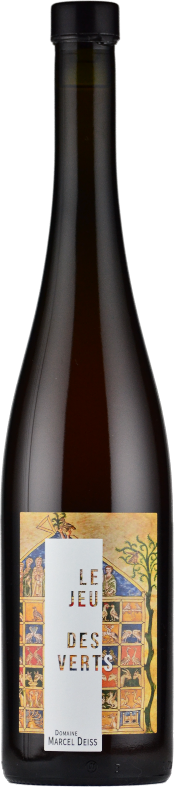 ル・ジュー・デ・ヴェール「グリュエンスピール」のぶどうを使用したオレンジワインです。リースリング、ピノ・ノワール、ゲヴェルツトラミネールが約3分の1ずつの混植・混醸。わずか10cm程度の砂礫質・花崗岩質の表土に、重厚な泥土質・粘土質の基層。平均樹齢30年。ステンレスタンクで3週間マセラシオンした後、フードルで12ヶ月間熟成。
