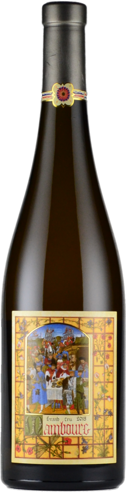マンブール グラン・クリュ1.5haの真南向き斜面畑。標高270m。平均樹齢15年。ピノ・グリ、ピノ・ノワール、ピノ・ムニエ、ピノ・ブラン、ピノ・ブーロの混植。第三紀の石灰岩と泥灰土基盤で、表土の石灰・マグネシウム層に陽光がたっぷりと降り注ぎます。この畑は北風が強いため貴腐菌がつかないことも特徴です。テロワールから見たぶどうの特長は、タンニンがとても力強く、かつまろやかという点で、ヘクタールあたり15~20ヘクトリットルという超低収量と相まって、口に含んだときの巨大なスケール感の源となっています。心深く感動させられる作品です。