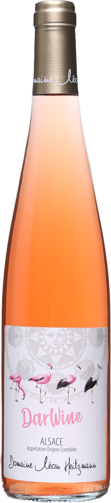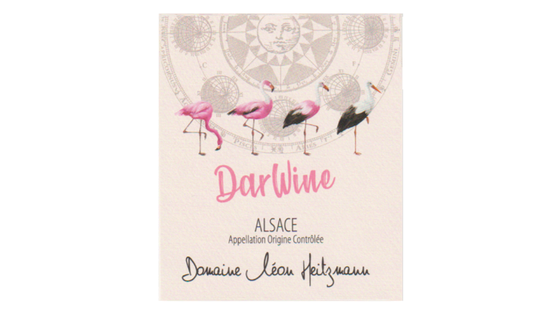 ダーウィンピノ・ノワール100%。沖積土壌。平均樹齢35年。直接圧搾法によるロゼワインです。ステンレスタンクで醸造。「フランスでロゼといえばプロヴァンスなどの南仏産が有名ですが、アルザスにも美味しいロゼがあるよ!ということを、アルザスのシンボルであるコウノトリから南仏のシンボルであるフラミンゴに進化させることで表現してみました(笑)」。
