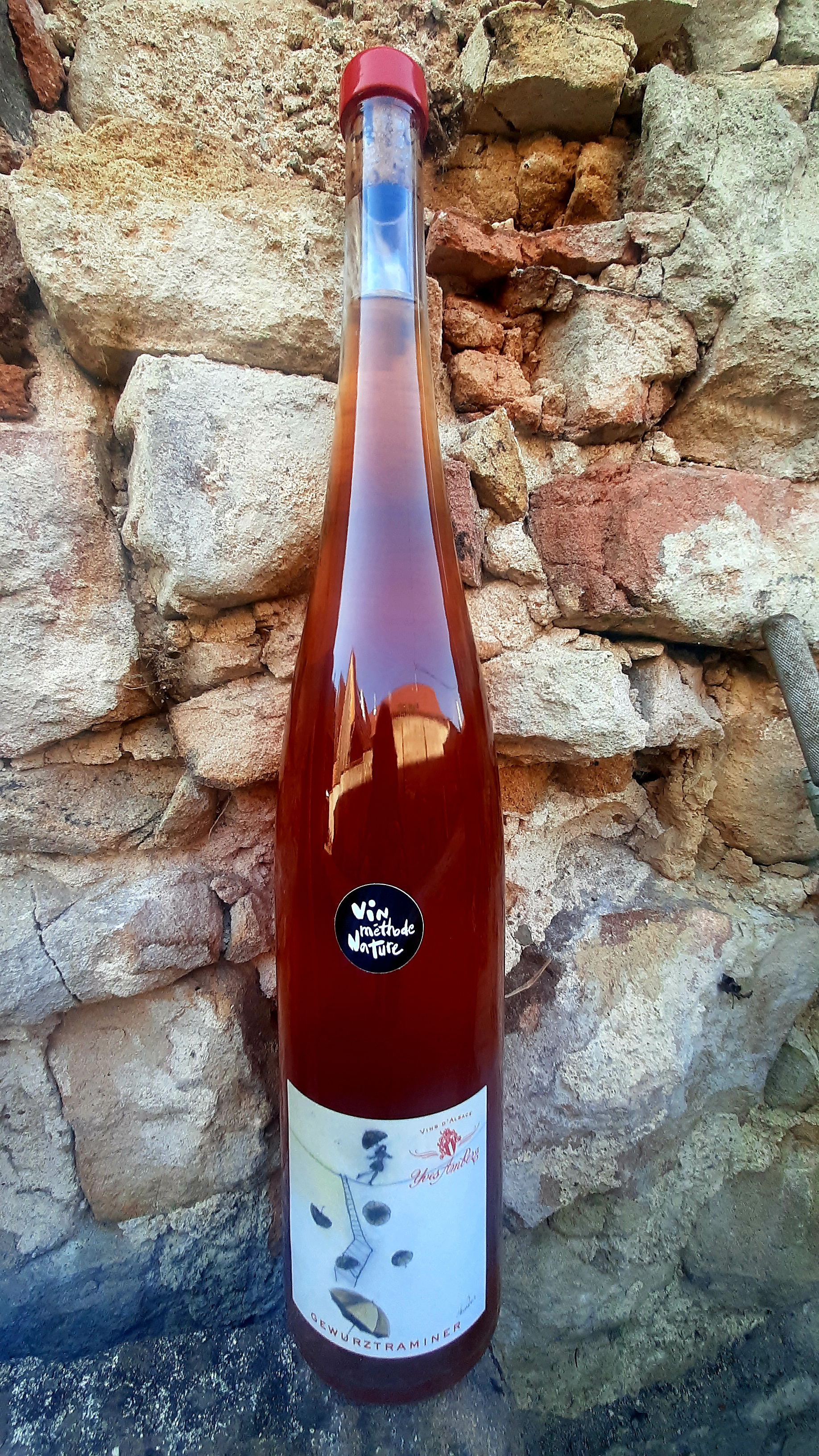 ゲヴュルツトラミネール ナチュールエプフィグ村産のゲヴュルツトラミネール100%。石灰質・沖積土壌。平均樹齢40年のVV。収量は40hl/ha。除梗100%。ステンレスタンクで20日間マセラシオンした、オレンジワインです。SO2は不使用。