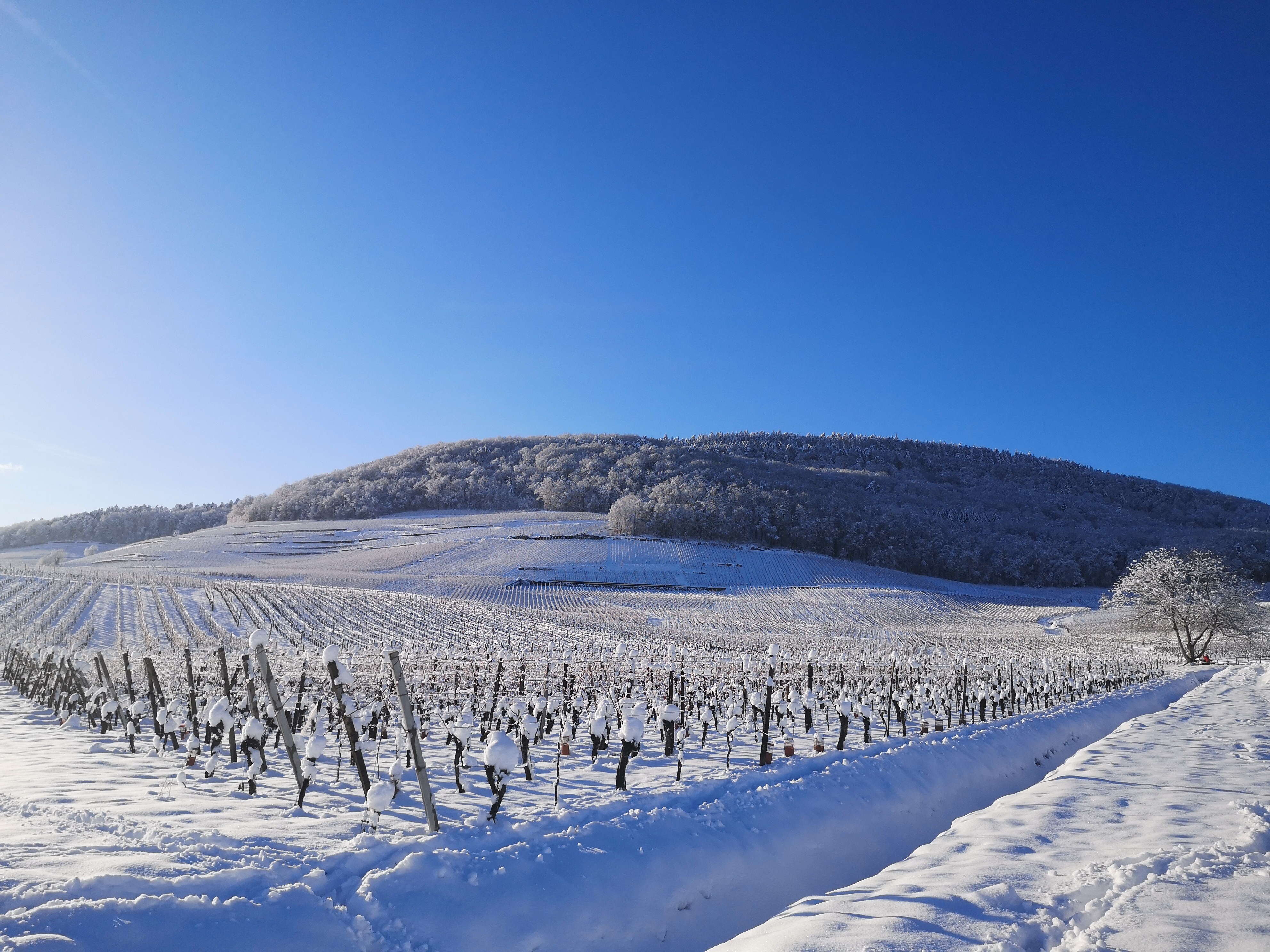 オリゾンゲヴュルツトラミネール100%。ベルグホルツ村に0.45ha。標高425~450mの斜面畑。泥灰土質・砂岩質土壌。樹齢約45年のVV。ステンレスタンクで3週間マセラシオンした後、9ヶ月間シュール・リー熟成させたオレンジワインです。作品名の「オリゾン」は「ホライズン(地平線、将来)」の意味で、果皮がピンク色のためアルザス産オレンジワインの主力品種となったゲヴュルツトラミネールが、アルザスワインの新しい地平線を切り拓いてゆくことを表現したものです。
