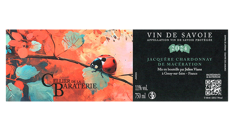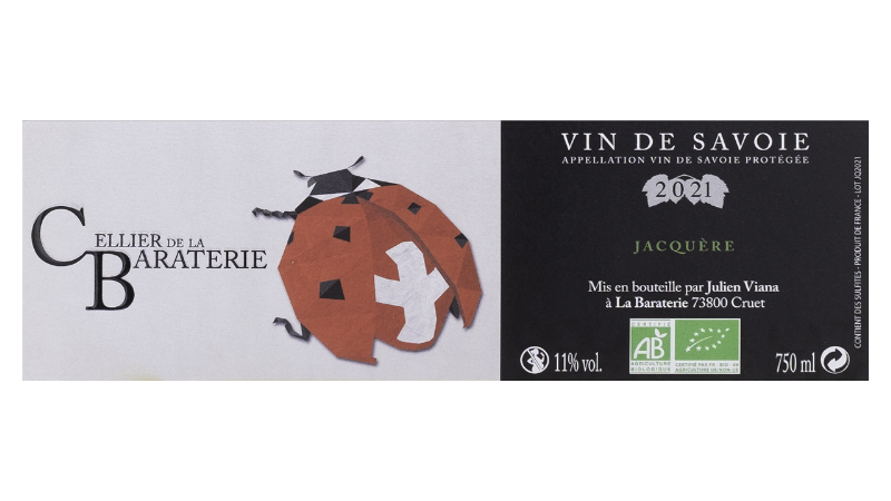 ジャケールAOC Vin de Savoie。ジャケール100%。フレトリーヴ村とサン・ピエール・ダルビニー村に合計1ha。粘土石灰質土壌。樹齢約35年のVV。収量は20hl/ha。ステンレスタンクで発酵後、6ヶ月間シュール・リー熟成。 -