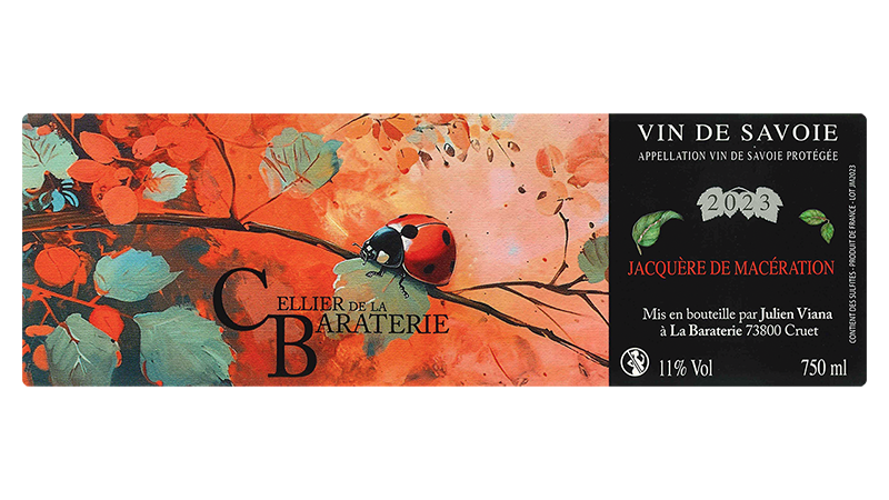 ジャケール・ド・マセラシオンAOC Vin de Savoie。ジャケール100%のオレンジワインです。フレトリーヴ村に0.1ha。粘土石灰質土壌。平均樹齢25年。収量は50hl/ha。ステンレスタンクで2週間のマセラシオン発酵後、5ヶ月間シュール・リー熟成。SO2は不使用。