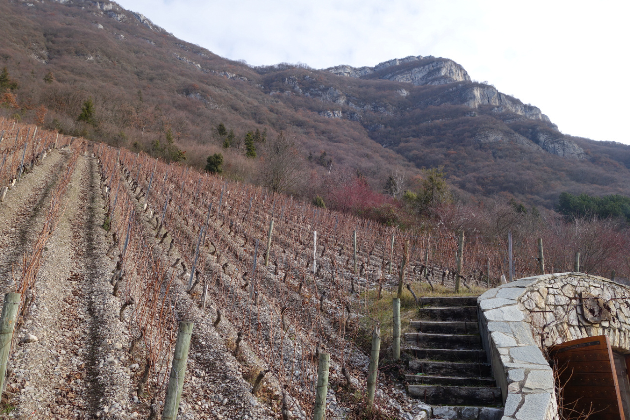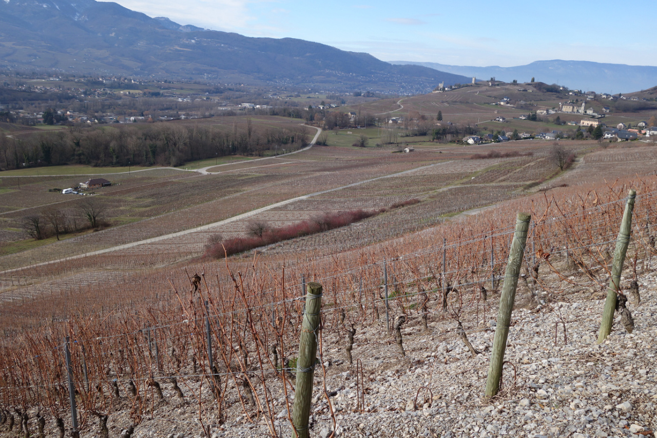 シニャンAOC Vin de Savoie Chignin。クリュ「シニャン」からのジャケール100%による白ワインです。3ha。粘土石灰質土壌。平均樹齢25年。ステンレスタンクで醸造。