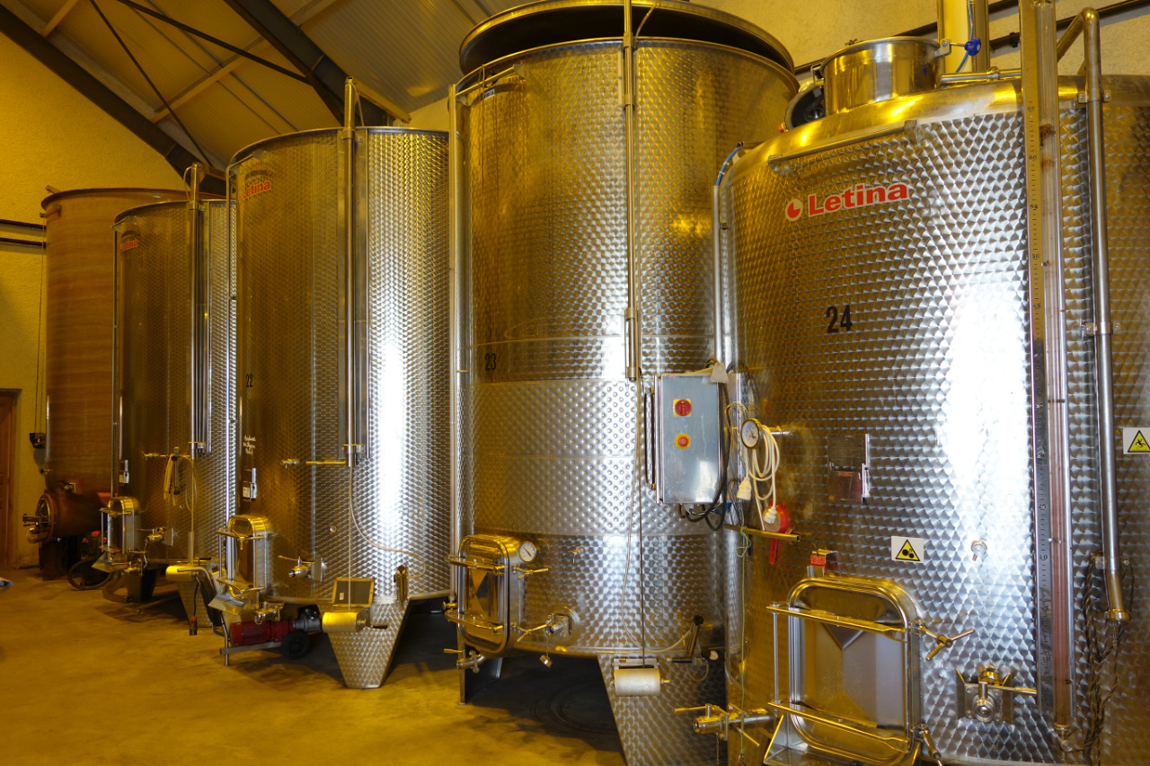 - 収穫はすべて手摘み。赤は100%除梗、白は除梗しない。天然酵母のみで発酵。ステンレスタンクを中心とした清潔な醸造