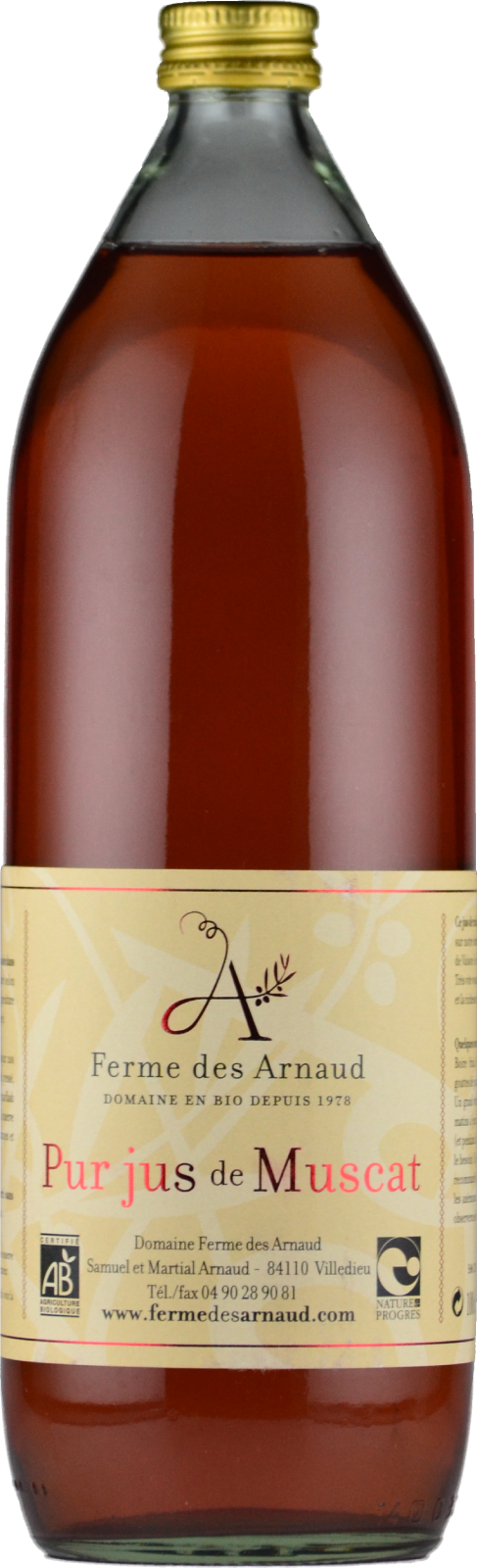 ピュール・ジュ・ド・ミュスカミュスカ100%の天然ぶどうジュースです。平均樹齢20年。無清澄、ノンフィルターでビン詰め。