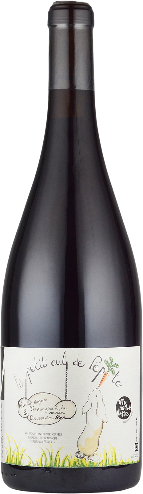 Vin de France(本来はAOC Côtes du Rhône)。グルナッシュ75%、シラー25%のブレンド。丘の中腹斜面に5.07ha。小石の多い粘土石灰質土壌。樹齢30年~50年のVV。収量は40hl/ha。除梗しない(全房発酵)。ステンレスタンクでアルコール発酵後、228リットルの樽でマロラクティック発酵&12ヶ月間熟成。無清澄、ノンフィルターでビン詰め。SO2はビン詰め前に極少量使用。年間990本のみの限定生産作品です。作品名は「ペピトの小さなおしり」という意味です。