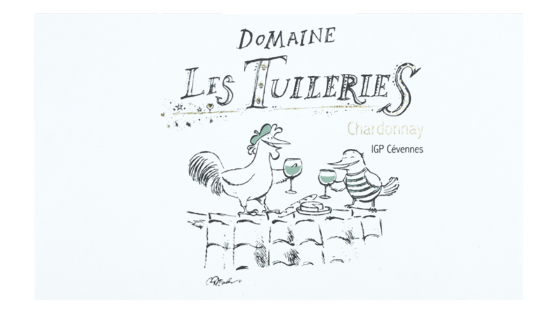 また、ドメーヌの屋根の上で楽しそうにワインを飲んでいる2羽の鶏は、国鳥としてフランスをシンボライズしたものであると同時に、広く鶏肉料理などと美味しく合わせていただけることを表現したものです。