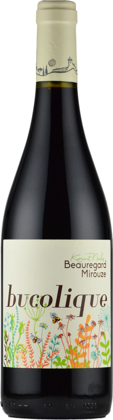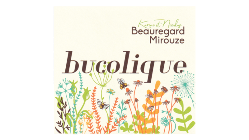 ビュコリックVin de France。ピレネー山脈麓の標高120メートルの山間畑より。1.3ha。メルロ50%、シラー30%、グルナッシュ、カリニャン、ムールヴェードル(3分の1ずつ)が20%のブレンド。砂岩質土壌。平均樹齢30年。ステンレスタンクで発酵&20ヶ月間熟成。ビン詰め時にのみ極少量のSO2を使用。作品名の「ビュコリック」は「牧歌、田園詩」の意味で、彼らの在り方そのものを表しています。