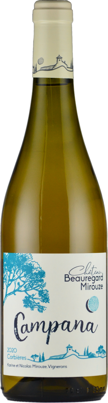 カンパーナ ブランAOP Corbières。ピレネー山脈麓の標高120メートルの山間畑より。1ha。マルサンヌ、ルーサンヌ、ヴェルメンティーノが3分の1ずつのブレンド。砂岩質土壌。平均樹齢30年。ステンレスタンクで発酵&5ヶ月間熟成。ビン詰め時にのみ極少量のSO2を使用。