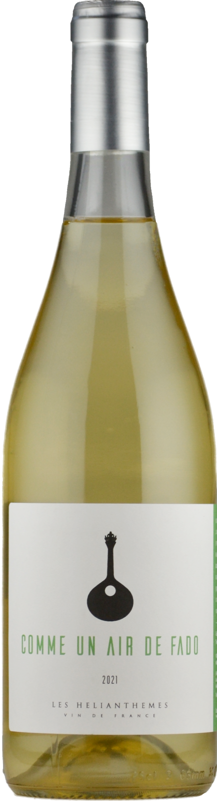 Vin de France。ミュスカ・ダレクサンドル100%。モレイヤ・ラ・イラ村の0.7haの区画より。石英質・砂岩質土壌。樹齢約70年のVV。収量は15hl/ha。ステンレスタンクで発酵後、6ヶ月間熟成。ぶどうを早摘みし、ポルトガルの「ヴィーニョ・ヴェルデ」の手法で醸造した爽快なワインです。アルコール度数は約10.5度。作品名の「コム・アン・エール・ド・ファド」は「ファド(ポルトガルの民族歌謡)の旋律のように」という意味です。