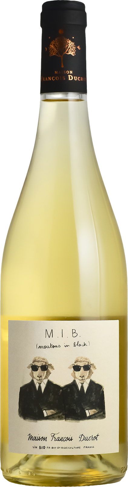 M.I.B.(ムートンズ・イン・ブラック)Vin de France。グルナッシュ・ノワール100%のブラン・ド・ノワールです。エロー県の畑より。4ha。粘土石灰質・砂質土壌。平均樹齢15年。コンクリート製タンクで発酵後、4ヶ月間熟成。SO2の使用は最小限。 -