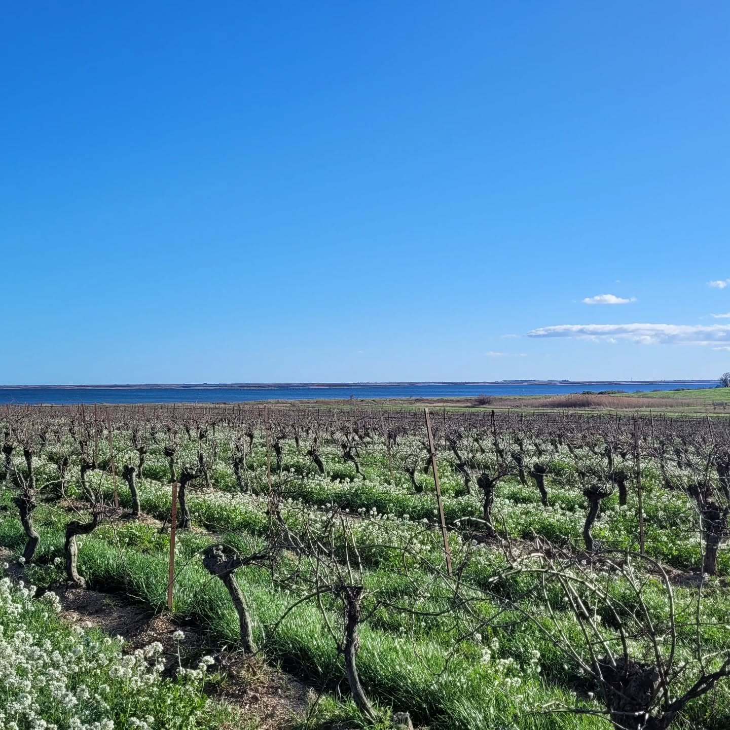 「私たちの畑はトー湖のすぐそばにあり、湖の朝霧がぶどう樹に潤いを与えてくれます。海抜0メートルで、暑く乾燥した夏には海水の塩分が地下を通じて逆流してくるため、耐塩性の高いサクランボやヤマモモ、ローズマリー、松などを植えて畑を守っています。これらの樹木は鳥や昆虫の恰好の住処にもなっており、近隣のトー盆地や鳥獣保護区と合わせて豊かな生物多様性が確立されています」。