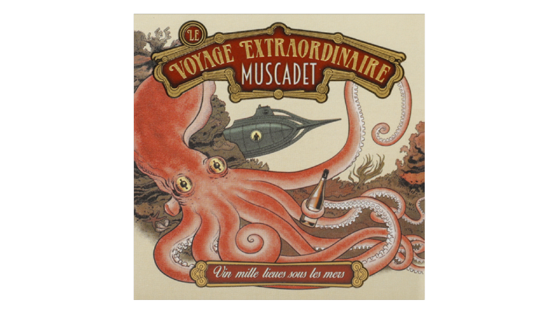 ル・ヴォワイヤージュ・エクストラオルディネール ミュスカデムロン・ド・ブルゴーニュ(ミュスカデ)100%。4ha。花崗岩土壌。平均樹齢25年。コンクリート製タンクで醸造。ラベルの絵は、「十五少年漂流記」「海底二万里」「八十日間世界一周」などを著した地元ナント出身の大小説家ジューヌ・ヴェルヌによる連作小説「Voyage Extraordinaire(驚異の旅)」にインスピレーションを得て、ヴァンサンの友人であるパリ在住の高名な漫画家ディミトリ・アヴラモグルーが描いたものです。