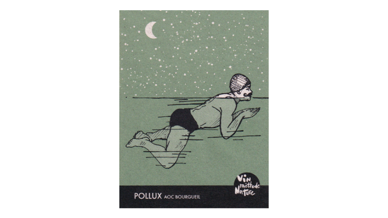 カベルネ・フラン100%。1.8ha。粘土石灰質土壌。樹齢10年以上。収量は39hl/ha。コンクリート製タンクで発酵後、10ヶ月間熟成。無清澄、ノンフィルターでビン詰め。SO2は不使用。ラベルの絵は、「私たち、フランス人のおじさん達が造ったこの作品を、海を越えて、世界中の人にお届けしたい。ヴァン・ナチュールの美味しさ、素晴らしさをひとりでも多くの方に知っていただきたい」という願いを込めて、デザイナーをしている彼らの従弟に描いてもらったものです。作品名の「ポリュクス」は全天21の1等星のひとつである「ふたご座β星」のことで、しばしば双子に例えられる「サン・ニコラ・ド・ブルグイユ」と「ブルグイユ」にもかけながら、明るい星々が海を照らしてくれるので、夜通し泳いで行きます!という彼らのパッションを表しています。