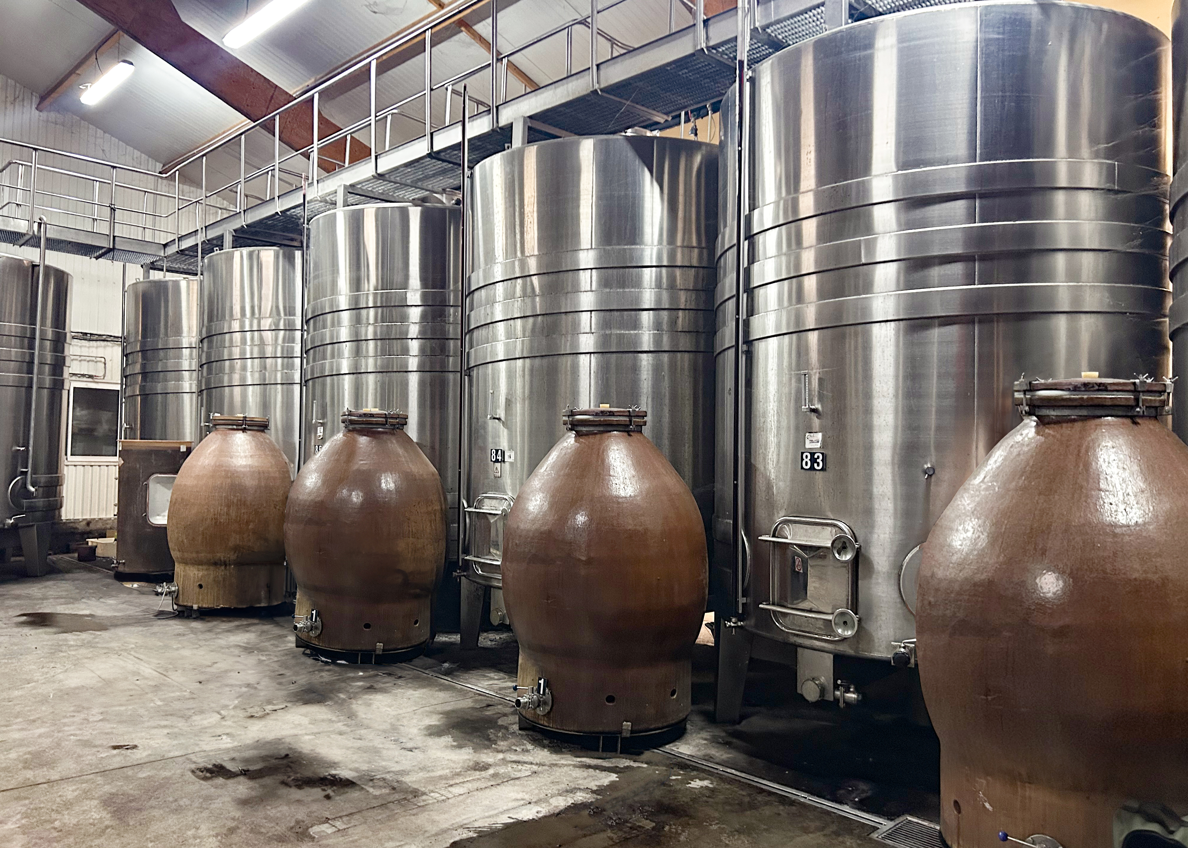 - ネゴシアンレンジは契約栽培農家からぶどうや果汁を購入して自家醸造。天然酵母のみで発酵。100%除梗。醸造にステンレスタンク、樽、アンフォラを使用