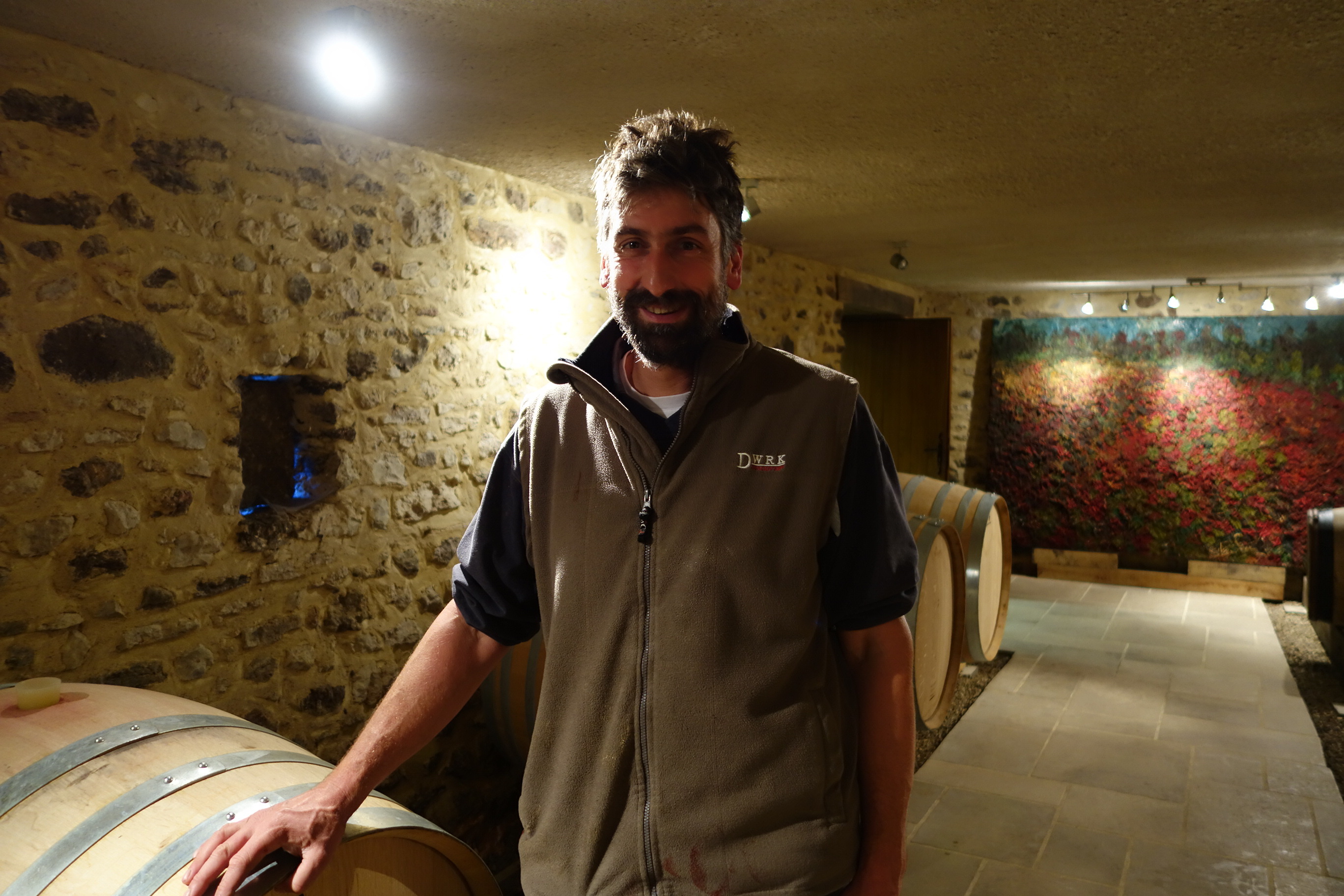尚、ラベルの絵は、このドメーヌの常連のお客さんご夫婦の息子さんで、当時6歳だったエミリアン君が、お父さんたちが試飲している間に紙ナプキンに描いたものです。立派な額に入ってレセプションルームに飾られたこの絵は、友愛や優しさに溢れるこの生産者の象徴であるように思えて、日本のために特別にリクエストしてラベルにしてもらったものです。