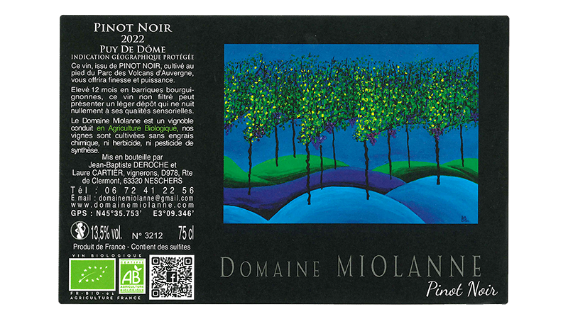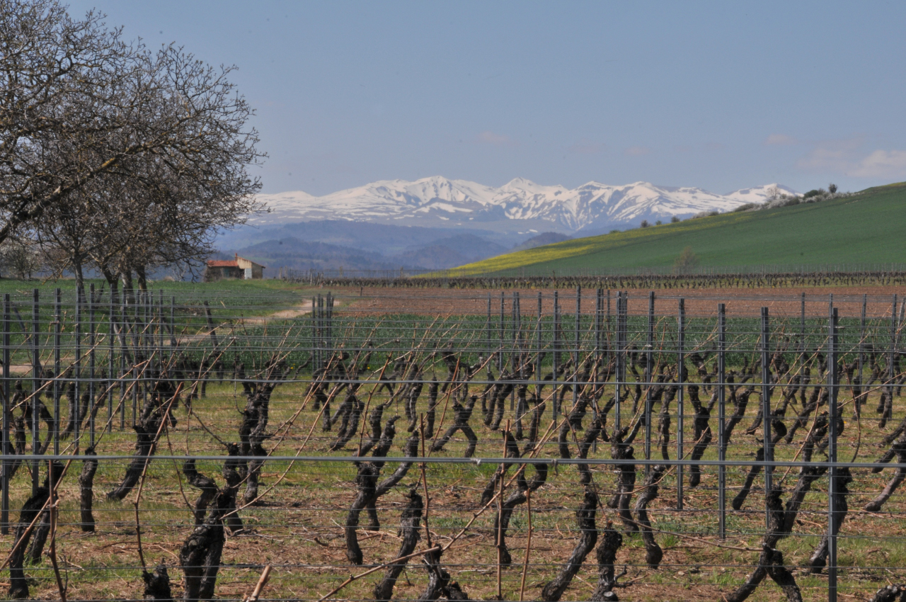 「コート・ドーヴェルニュはサンシー山塊の火山噴火によって形成された標高450メートルの台地で、土壌も火山灰や軽石、玄武岩などで構成されています。この特別なテロワールを活かすため、長らくこの地で栽培されてきたピノ・ノワール、ガメイ、シャルドネ加えて、ゲヴュルツトラミネール、ピノ・グリ、シラーを栽培しています。創業時から化学肥料や農薬はまったく使用しておらず、多種多様な植物の栽培や羊の放牧といったアグロエコロジーを実践しています」。