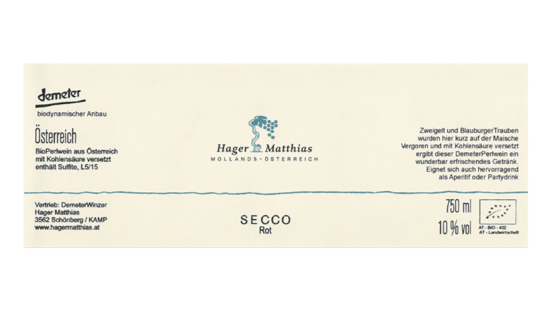 ロット セッコ炭酸ガス注入法による弱発泡性赤ワインです。ツヴァイゲルト50%、ブラウブルガー50%。粘土質・レス質土壌。平均樹齢25~30年。ステンレスタンクで4ヶ月間、その後オーク樽で2ヶ月間熟成させた後、2.5気圧まで炭酸ガスを注入。