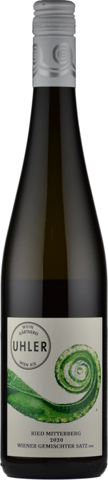 11品種(ヴェルシュリースリング、ローター・ヴェルトリーナー、トラミナー、リースリング、ノイブルガー、グラウアーブルグンダー、シャルドネ、グリューナー・ヴェルトリーナー、ゲルバー・ムスカテラー、ヴァイスブルグンダー、シルヴァーナー)の混植・混醸。ヌスベルクのグリンツィング寄りの区画で0.46ha。石灰岩の上に玄武岩の礫と粘土の土壌。北の森からの冷風が吹く冷涼なミクロクリマ。平均樹齢約35年。ステンレスタンクで醸造。「ミッテルベルグ」は畑名です。 -