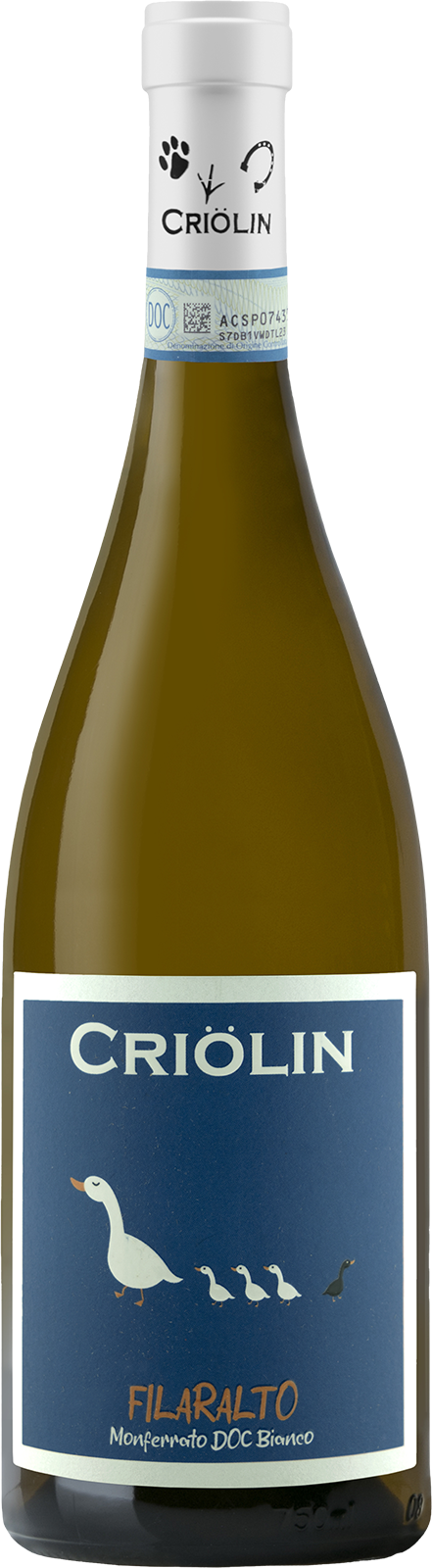 フィララルト モンフェッラート ビアンコDOC Monferrato。アルネイス100%。2ha。石灰質土壌。平均樹齢25年。ステンレスタンクで発酵後、4ヶ月間シュール・リー熟成。「フィララルト」は区画名です。「アルネイスはロエーロ地区のものが有名ですが、ここモンフェッラートにも素晴らしいアルネイスがあることを黒いアヒルで表現しました」。 -