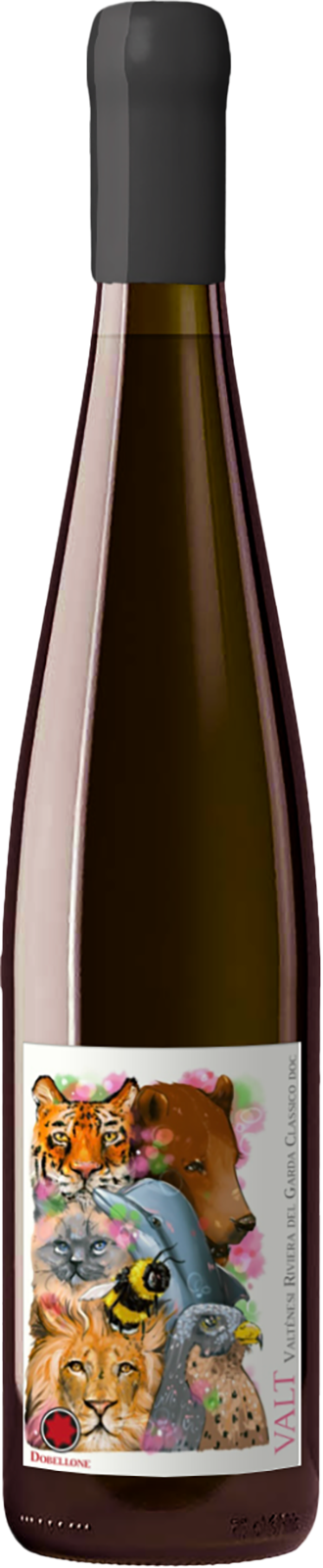 ヴァルト・ヴァルテネージ リヴェラ・デル・ガルダ・クラッシコDOC Rivera del Garda Classico。グロッペッロ75%、バルベーラ25%。0.5ha。モレニコ(氷堆石)・粘土質土壌。樹齢約40年のVV。直接圧搾法によるロゼワインです。ステンレスタンクで発酵後、4ヶ月間熟成。無清澄、ノンフィルターでビン詰め。年間1400本のみの限定作品です。作品名の「VALT」は、Valtènesi、Amicizia(友情)、Lealtà(忠誠心)、Terroir(テロワール)の頭文字を繋げたもので、彼らのイズム、価値観を表しています。ラベルに描かれた動物は、7人のパートナーたちがそれぞれ自分の個性を表す動物を選んでラベルに表現したものです。